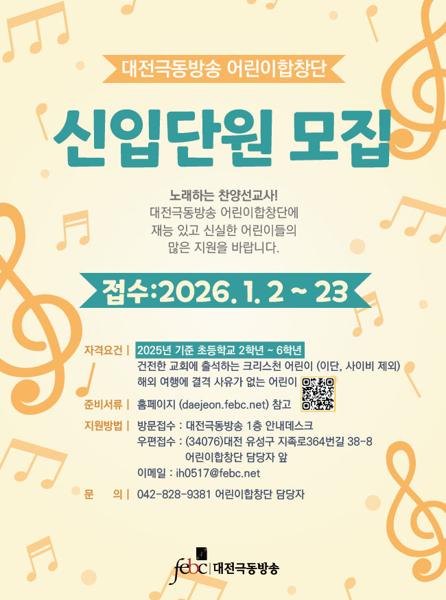 2026 광주극동방송 어린이합창단 신입단원 모집