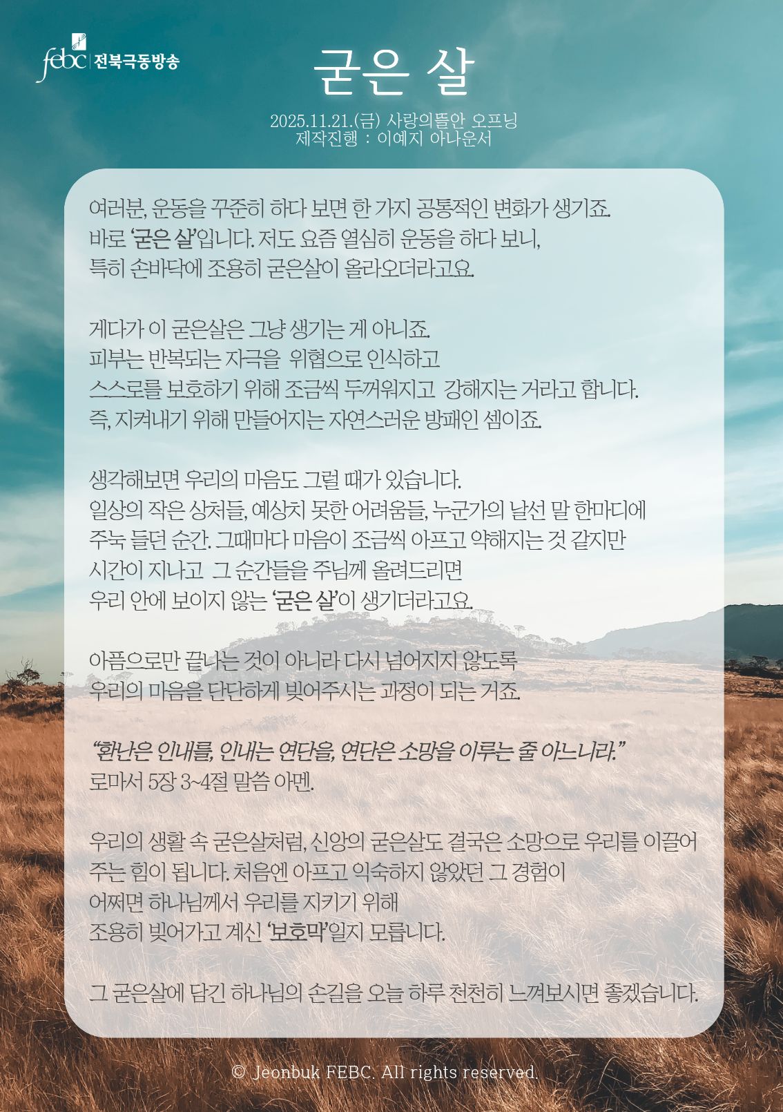 [전북] 25.11.21.(금) 사랑의뜰안 오프닝 "굳은 살"