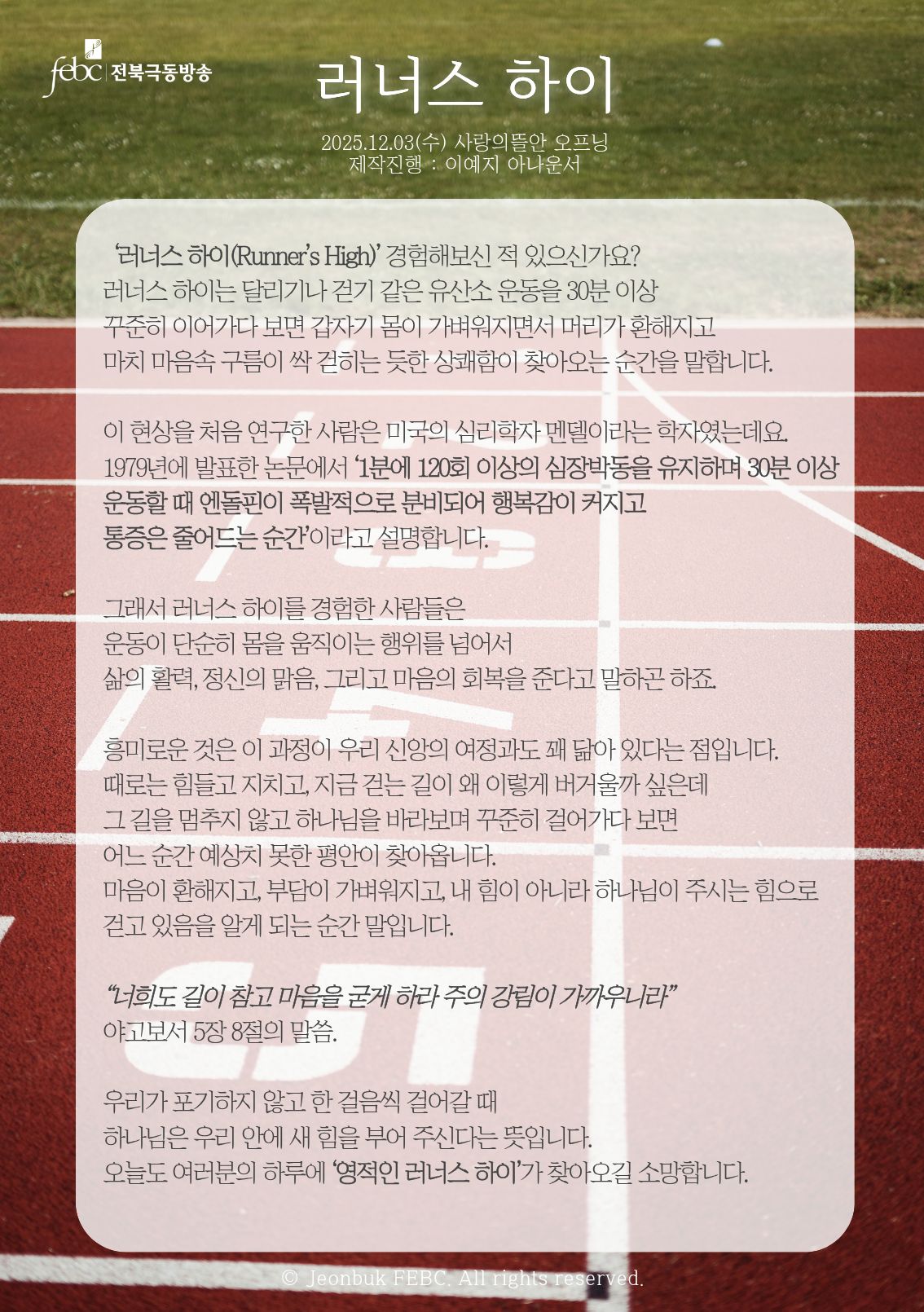 [전북] 25.12.03.(수) 사랑의뜰안 오프닝 "러너스 하이"