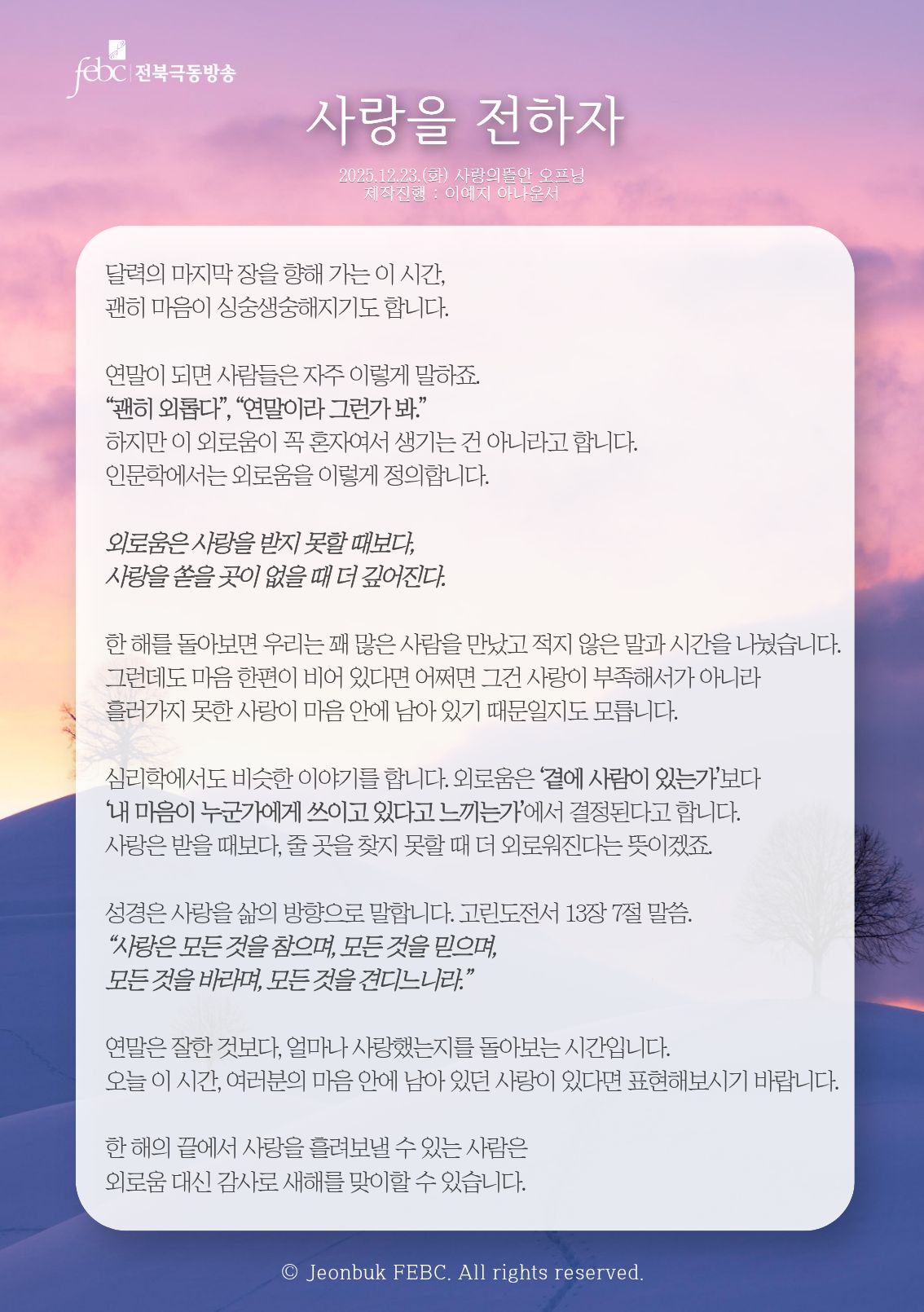[전북] 25.12.23.(화) 사랑의뜰안 오프닝 "사랑을 전하자"