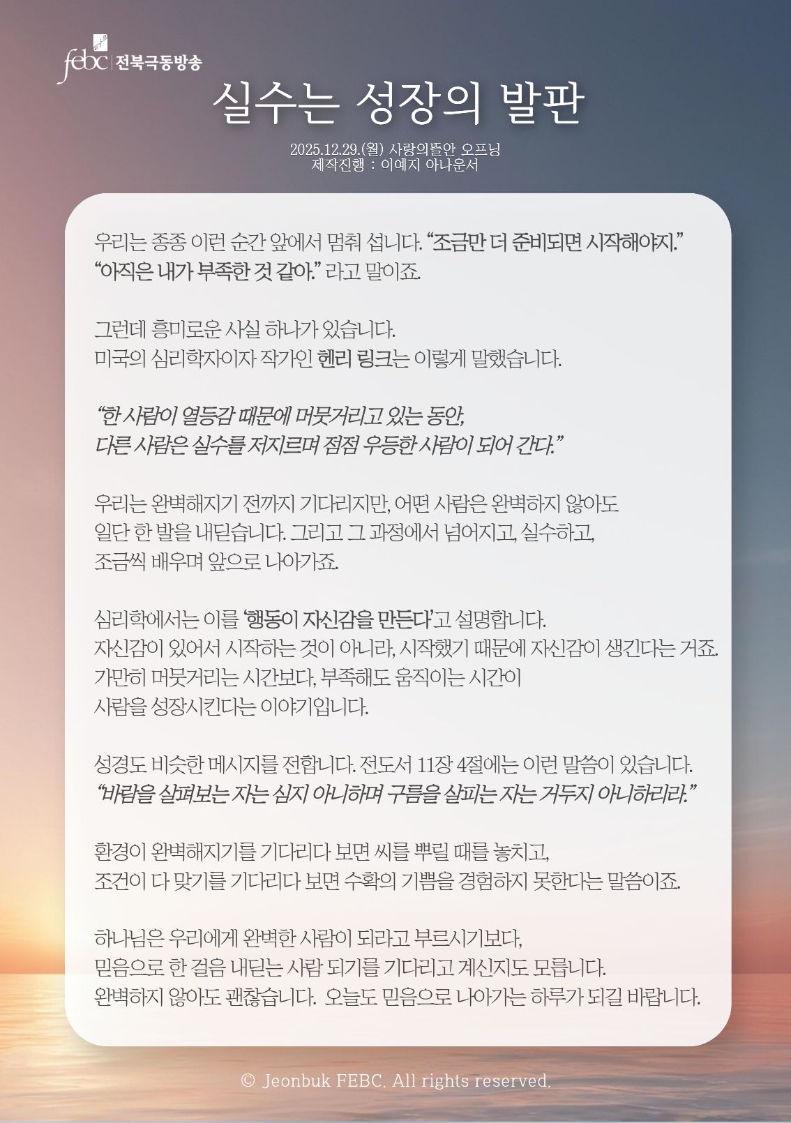 [전북] 25.12.29.(월) 사랑의뜰안 오프닝 "실수는 성장의 발판"