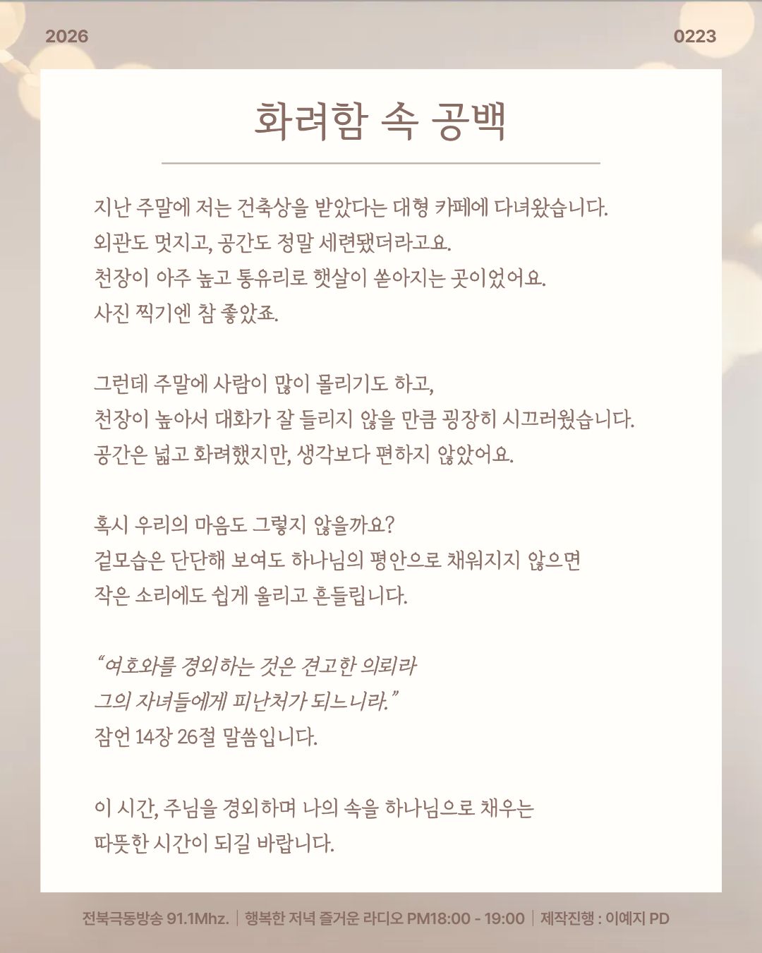 전북극동방송 행복한 저녁 즐거운 라디오!