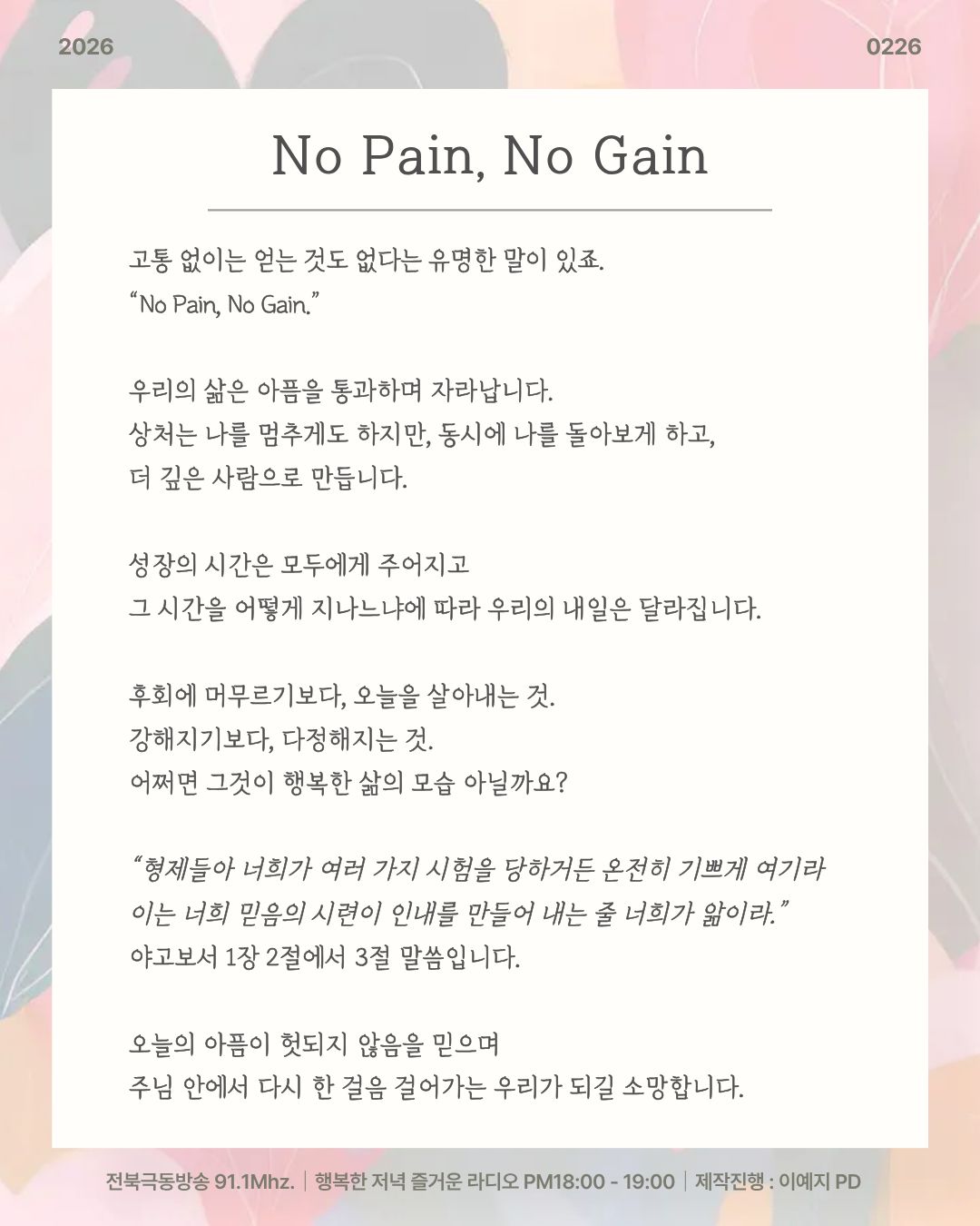 2026년 2월 26일(목) 행저즐라 오프닝 [ No Pain, No Gain ]