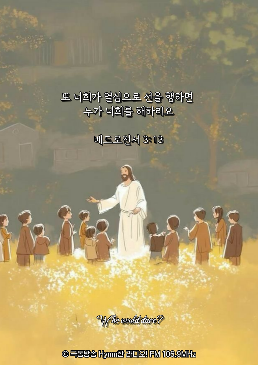 아멘! 베드로전서 3장 13절 말씀입니다. 아멘!