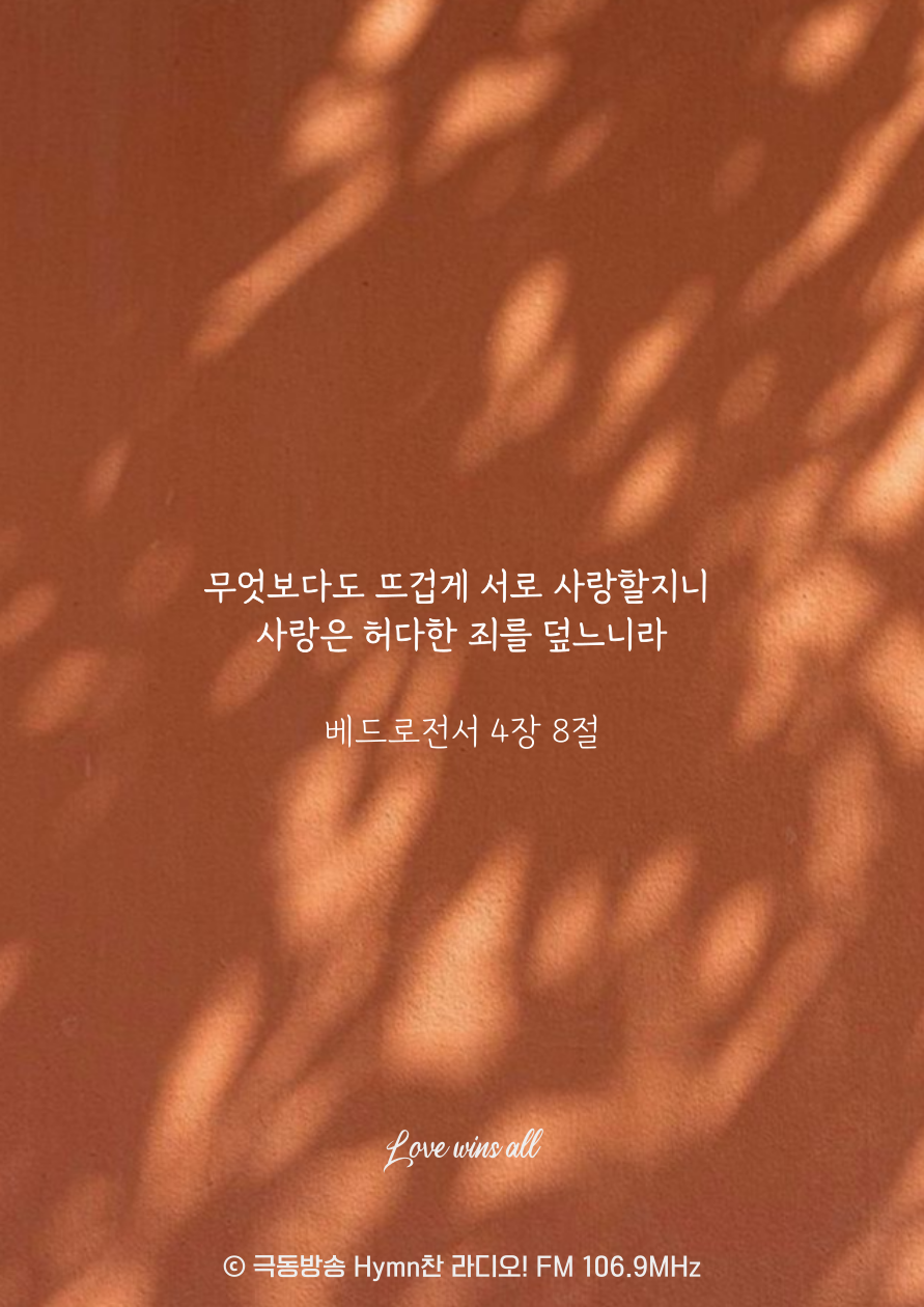 무엇보다도 뜨겁게 서로 사랑할지니 사랑은 허다한 죄를 덮느니라