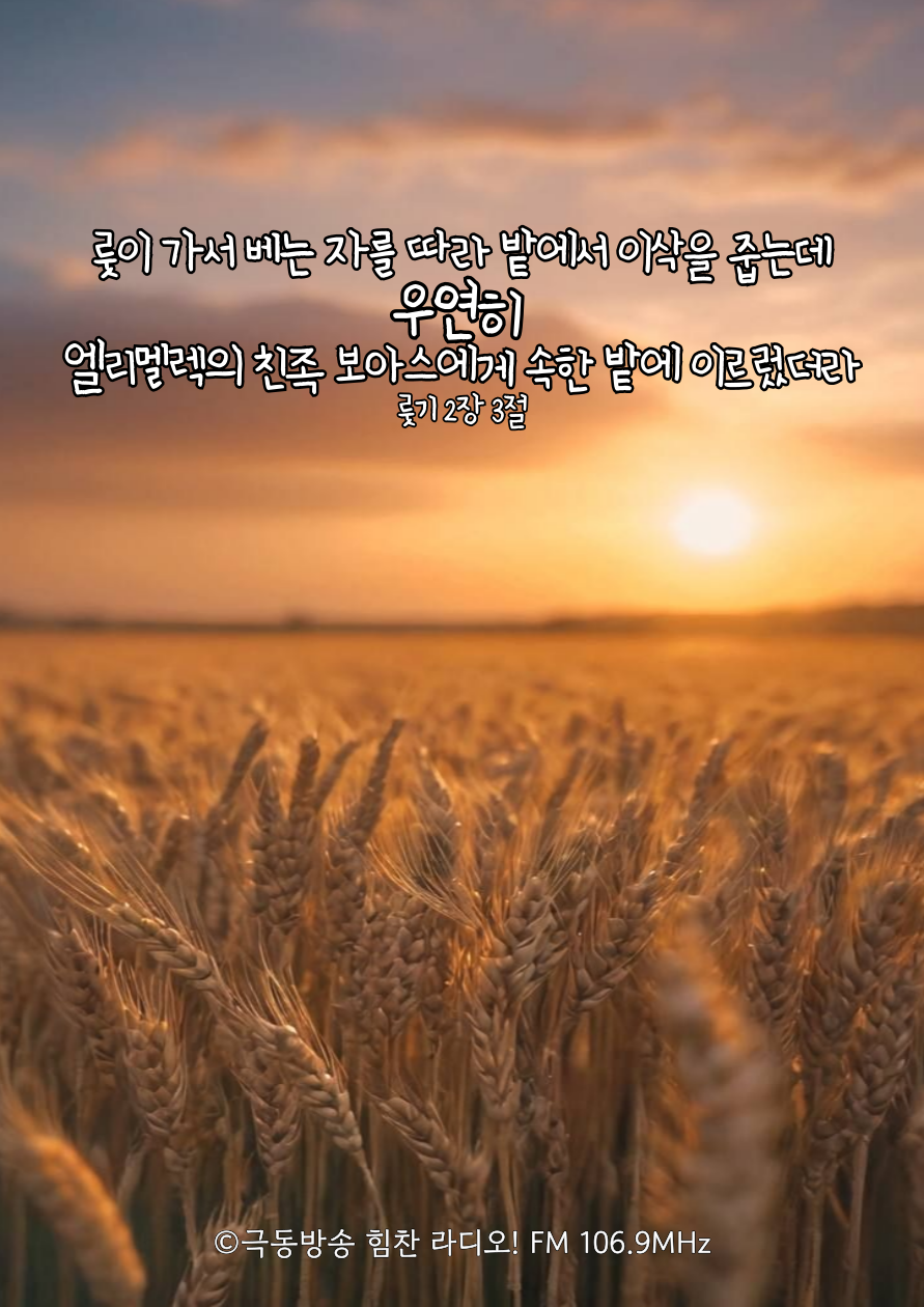 ‘우연히’ 보아스의 밭에 이르렀다고 하죠.