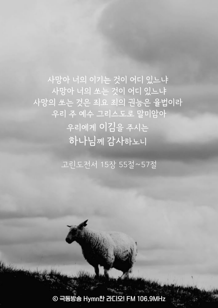 고린도전서 15장 55절에서 57절까지의 말씀입니다. 아멘!